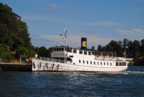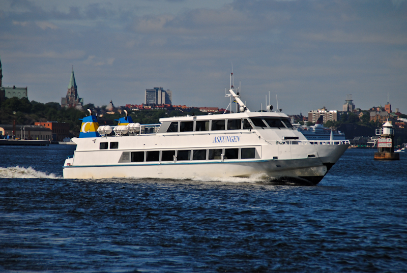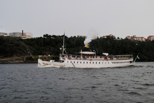 Utanför Nacka Strand träffade vi på Askungen som för tillfället kör turer till Fjäderholmarna.