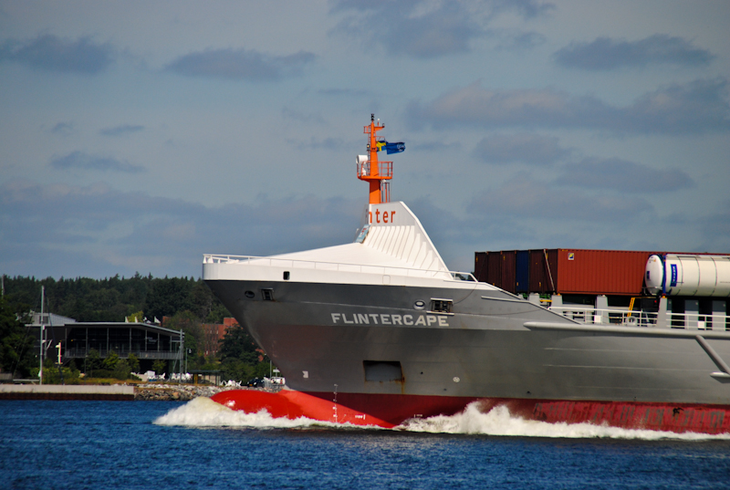 Även containerfartyget Flintercape var på väg in mot Stockholm.