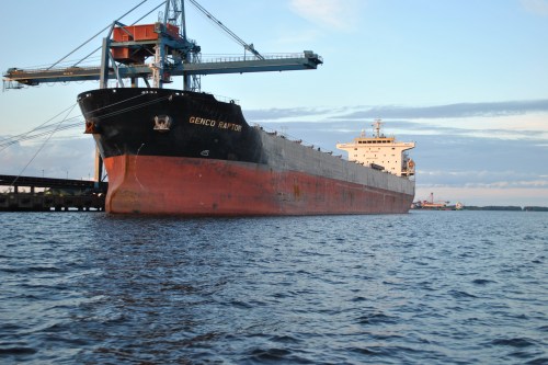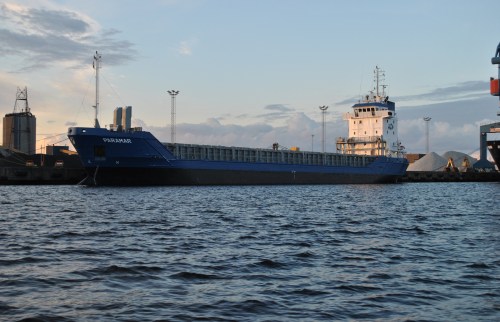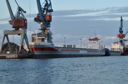 Fyra stycken bulkfartyg ligger inne i hamnen. Fraserborg, Paramar, Jollas och Genco Raptor.