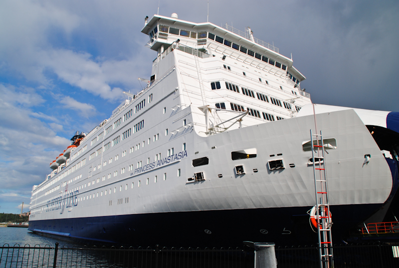 Ditresan gick med SPL Princess Anastasia till Tallinn från Stockholm. Vi kom till bilincheckningen i Frihamnen runt 17.00 lördagen den 25 juni. En halvtimme senare hade vi backat in bilen ombord. Fast det hade ju varit lättare att få vända runt bilen ombord på färjan och slippa backa så långt. Väl ombord så kände man ju direkt igen olika platser från Mariella. Men det var lite mer slitage och ”gammal modig” interiör.