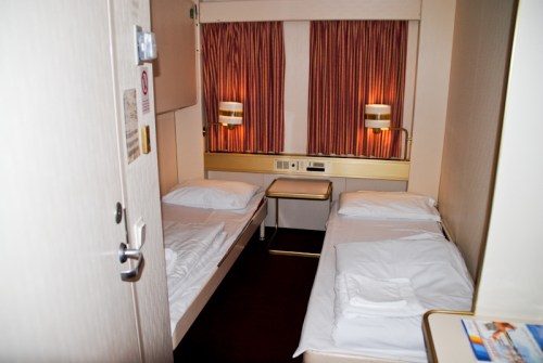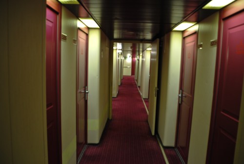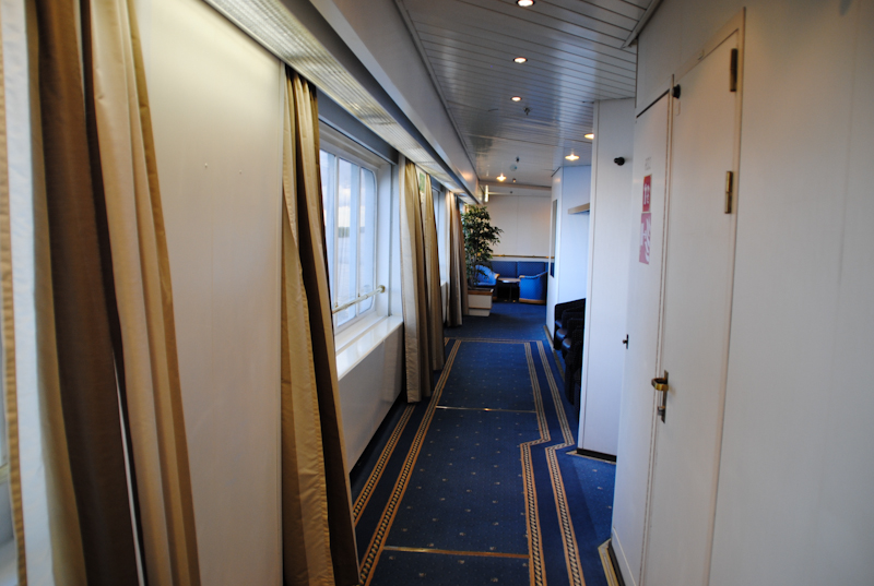 Hytten var fräsch och rätt så rymlig. Dörren hade rätt så många bucklor (vilket de flesta dörrar i vår korridor hade), undrar om det är fulla ryssar eller sjösjuka britter som har orsakat dessa? 😉