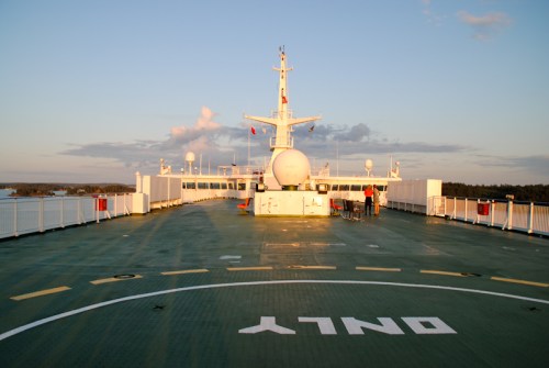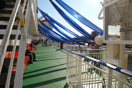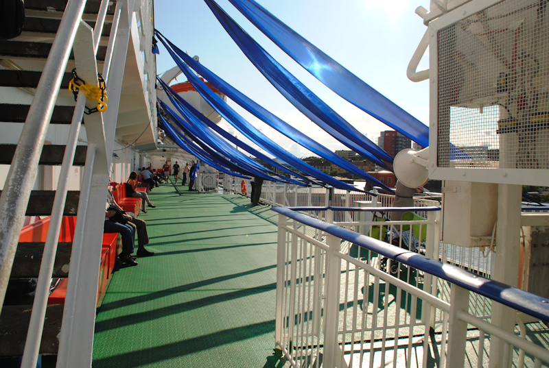 Ut på soldäck för att se Victoria I avgång, den båt som jag sedan åkte hem med.