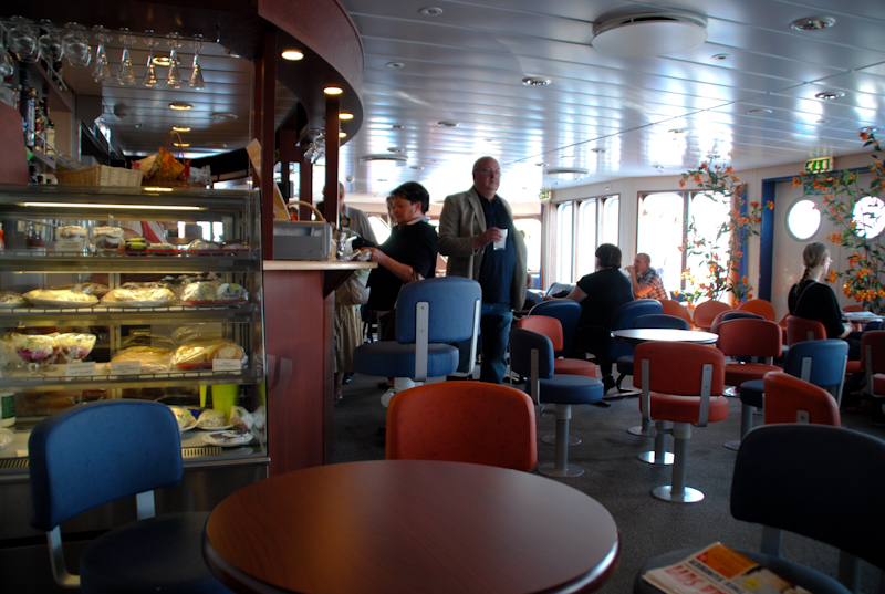 Ombord finn det två matställen en cafeteria mitt i och sen en liten bistro eller nåt i fören/aktern (jag vet inte riktigt vilket håll som var vilket ombord 😉 ).