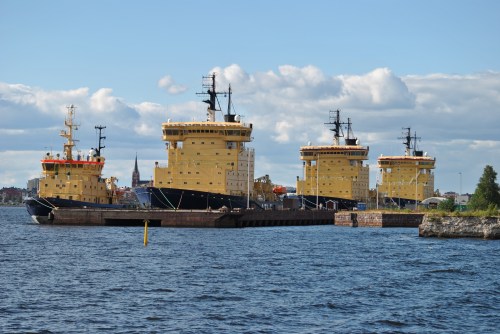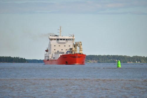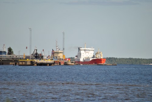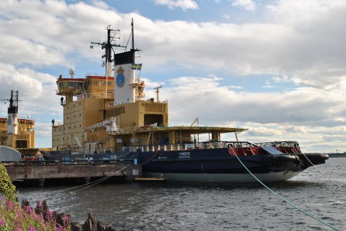 Hon fortsätter mot Cementas kaj vid isbrytarna.