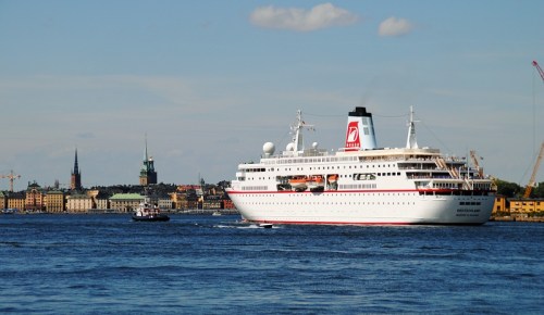 Ännu en dag med fina kryssningsfartyg inne i Stockholm. Skorstenen här ovan tillhör Artania som ägs av Phoenix reisen.