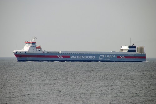 Ja du. Hon kan nog köra lite olika frakter eftersom hon är ett roro-fartyg. Men huvudsaken är nog papper och liknande produkter. För jag vet att Wagenborg kör åt SCA. Så mycket kan jag säga.