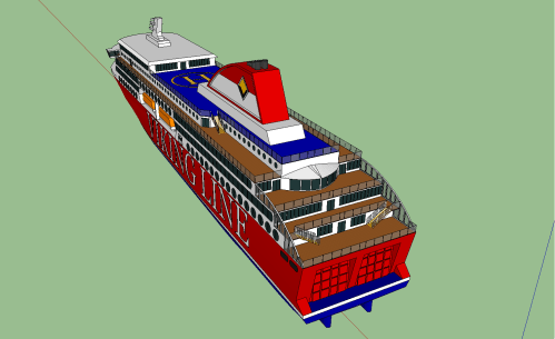 Jag har börjat använda Google sketchup för att kunna göra fartyg i 3-D. Den senaste veckan har jag ritat på en färja till Viking line som jag tänkt som ersättare till Rosella. Hon påminner ganska mycket om Xprs men med en liten annan design.