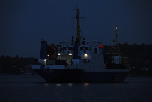 Utanför Saltsjö-Duvnäs låg Plejiel, ett kabelläggningsfartyg.