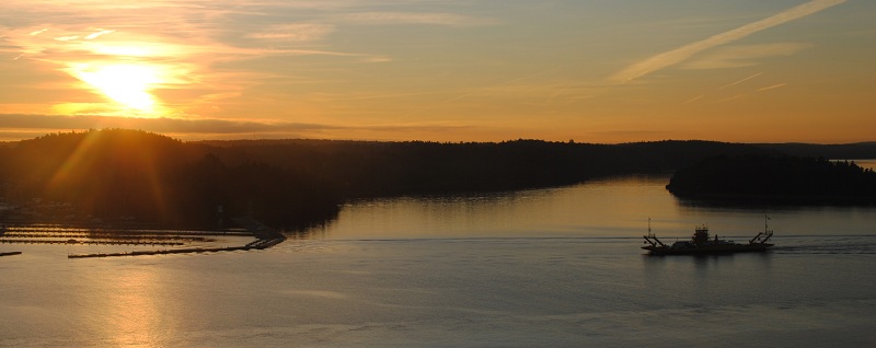 Ekeröfärjor i solnedgång