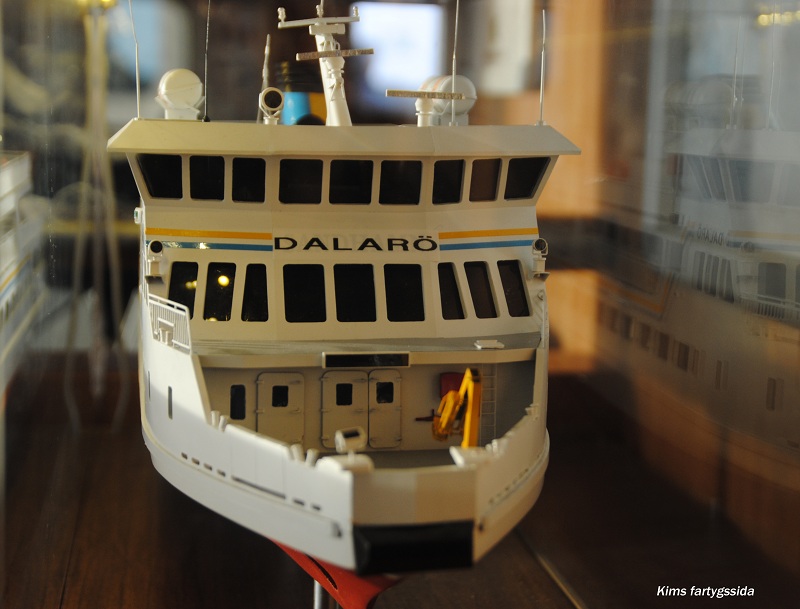 Ombord på Dalarö hittar man denna modell. Om man tittar noggrant så kan man se att från början stod namnet Sandhamn på modellen, men man har senare klistrat över en lapp med namnet Dalarö.