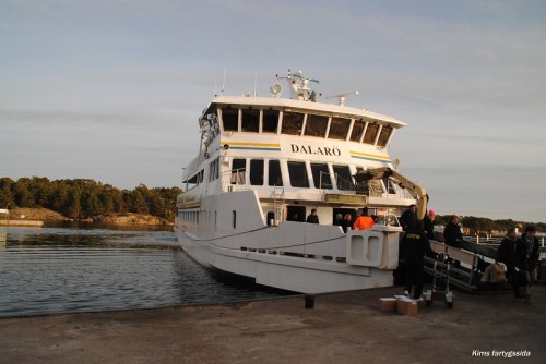 Dalarö ankom Sandhamns brygga några minuter försenade. Vi bestämde oss för att gå upp på en klippa och beskåda Dalarö när hon gled ut mot Harö och Hagede. Vi stannade bara en kvart sen orkade vi inte vänta längre. Nu på ais:en såg jag däremot att hon avgick från Sandhamn endast 5 minyter efter att vi hade lämnat klippan!