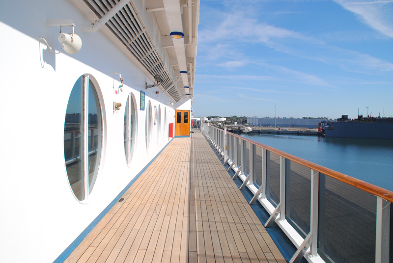 Vi kom ombord bland de första redan vid klockan 12.30. Eftersom hytten inte var tillgänglig förrän efter 14.00. Så tog jag en tur runt promenaddäcket på däck 3. Senare kommer jag att komma med en rundvandring däck för däck.