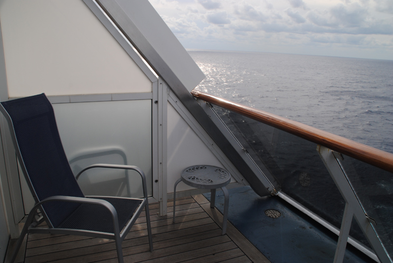 En vy från andra sidan på balkongen. Jag ska tillägga att dessa bilder på balkongen är tagna ute till havs en annan dag under kryssningen.
