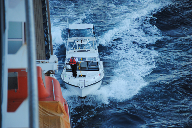 En bit utanför hamnen, vände vi runt och började backa in i den trånga farleden.