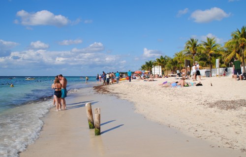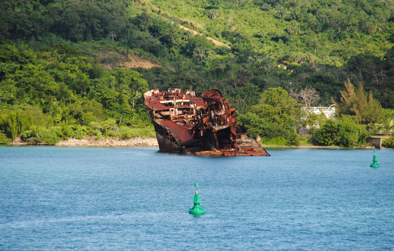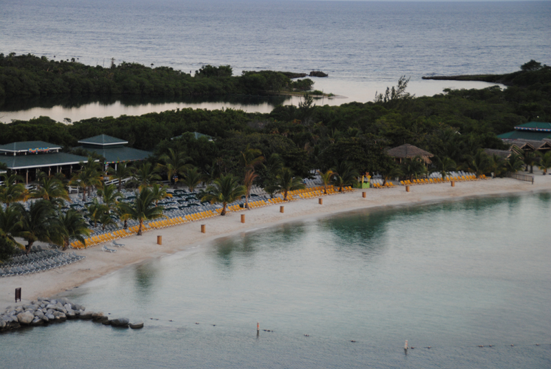 Stranden vid Mahogany bay. Kvällen blev lugn med middag i buffén och lite slappande på däck.