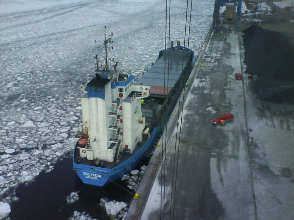 Det första jag gjorde idag var att hjälpa till att förtöja Solymar som kom med legeringar till SSAB (Trossarna var ganska tunga, så fick kämpa 😉 . Sedan så var jag upp i kranen som skulle lossa Solymar. Hade en trevlig pratstund med kranföraren, och passade även på att fota några bilder. Vid 10 så var det dags för lunch. Efter lunchen så tog dom med mig till verkstan för att byta däck på två bilar. Fick även tvätta en smutsig traktor. Sedan så fick jag hjälpa till att skotta bort kalksten som hade hamnat på kajkanten. Efter det så var jag i verkstan och fick hjälpa till lite där 🙂