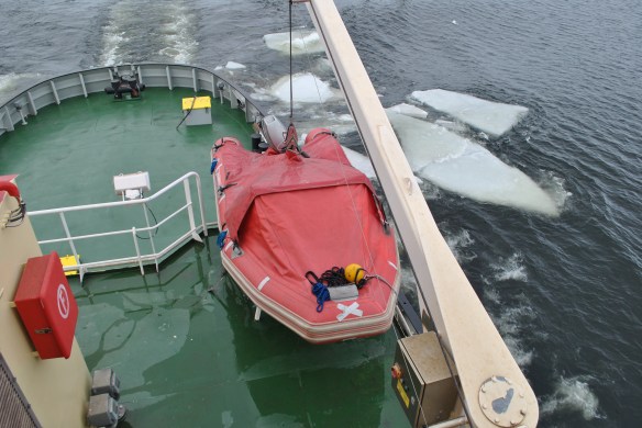 Oskar (Underhållschef) får syn på en säl och tar fram kikaren.