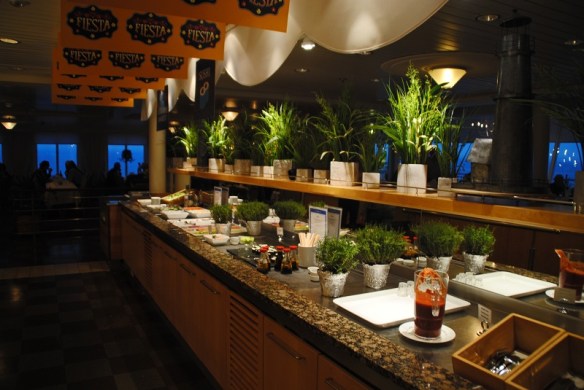 Tallinksilja har rätt så nyligen gjort om utbudet i buffén. Jag är lite besviken på att man har tagit bort många av de lokala rätterna som man hade tidigare. Många av rätterna var även smaklösa (t.ex. pannacottan och varmrätterna). Laxen och sillarna var även väldigt salta. Något som var bra med det nya utbudet var att de nu har tacos och sushi. Om man gillade frukt så fanns både melonsoppa och bärsmoothie bland efterrätterna. Så överlag blev jag mätt och belåten, men jag tyckte att buffén smakade bättre förut.