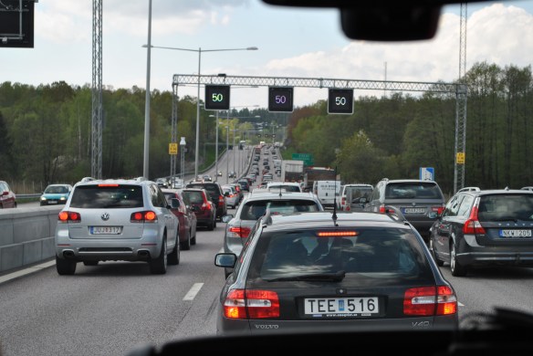 Trafikstockning på E4. Vi åkte nämligen hyrbil till Karlskrona från Arlanda 😉