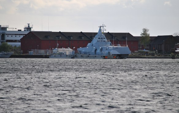Ubåt av Gotland klassen, och i bakgrunden lite annat militärt. Dom till höger tror jag är Minfartyg Korvetten Helsingborg, (Visby klass)