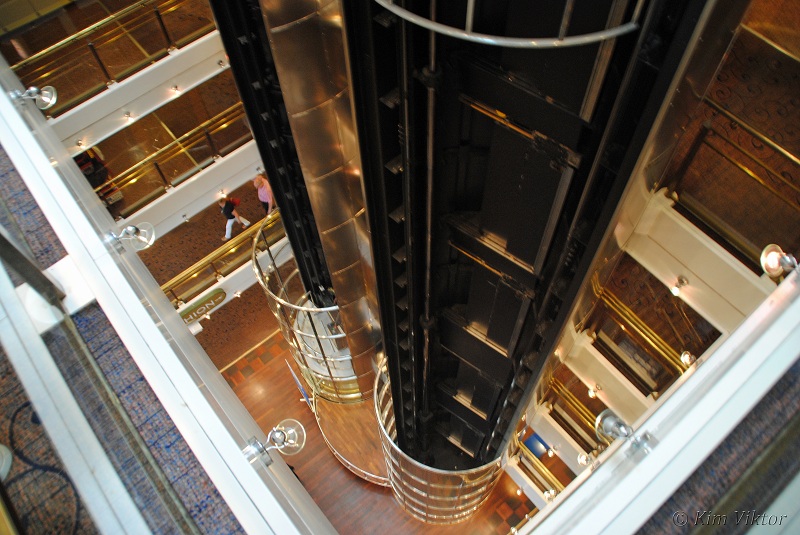 När vi kom upp till soldäcket så hade de inte öppnat det än. Istället fick vi spana in hissarna.