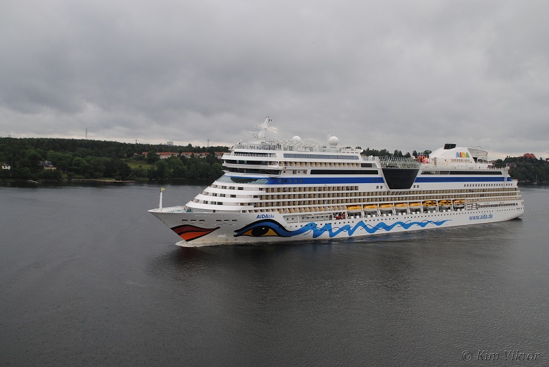AIDAblu byggd 2010 närmade sig Stockholm vid vårt möte.