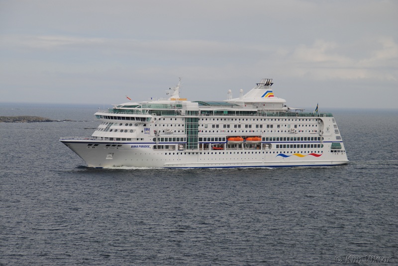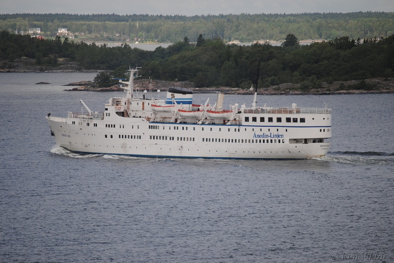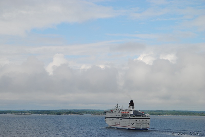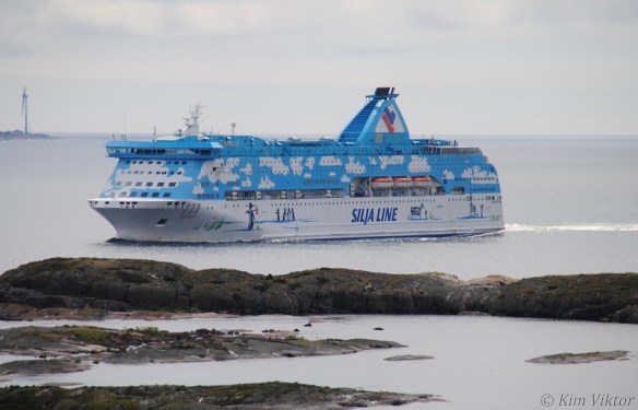 Silja Serenade girade ute på Torsbyfjärden.