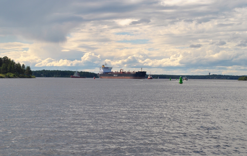 Victoria och Viscaria håller på att vända runt tankern Baltic Frost.