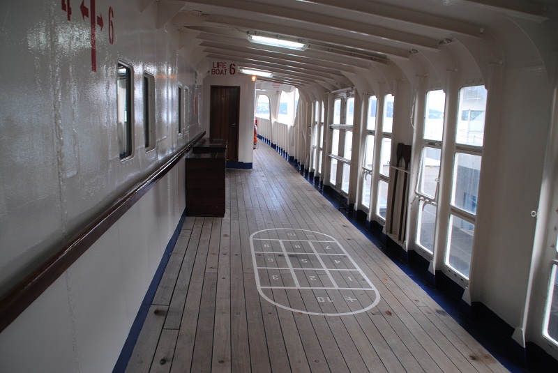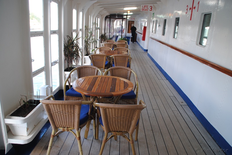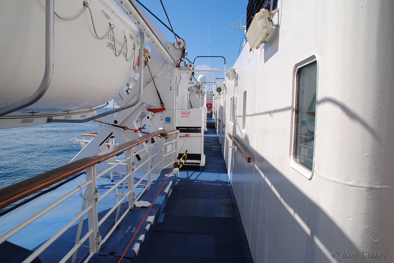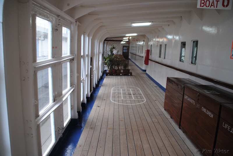 Promenaddäcket som går på både SB och BB sida (utanför Lido lounge).