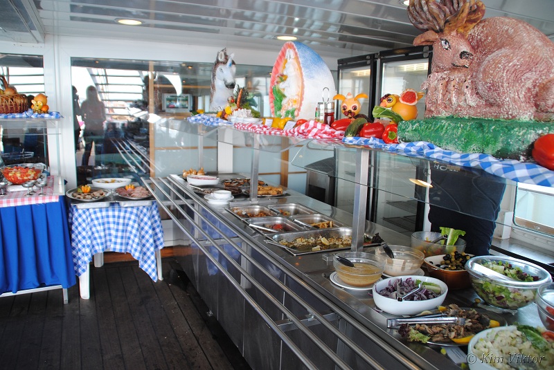 Vy från akterdäcket in mot buffén.