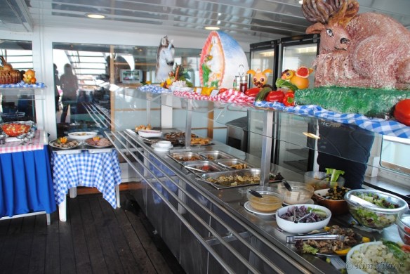 Själva buffén låg ute i friska luften. Frukostutbudet var likadant dag efter dag, med exakta samma saker som i restaurangen. Lunchen var varierande från dag till dag, men det var fortfarande ungefär samma rätter som restaurangen serverade i form av a la carte. För mig som tyckte att vissa prtioner i restaurangen var för små så passade buffén utmärkt, då portionerna blev något större. 😉 Drickan som ingick i priset var bara vattnet som smakade klor. De kunde gärna ha haft en lemonad också som på Carnival.
