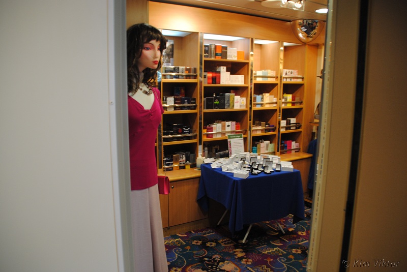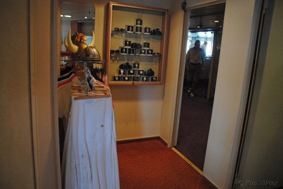 Butiken ombord var i klass med Birger Jarl, t.o.m. mindre än Birgers. Så man kunde bara gå in vända och gå ut. 😉 Ändå köpte jag bl.a. en keps och t-shirts här.