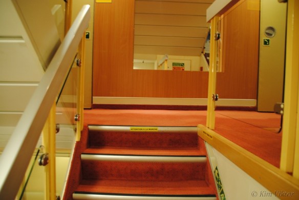 Trapporna ombord var väldigt smala. Så man fick ofta lämna företräde för äldre som skulle upp och ner för trapporna. Jobbigaste var det när det var måltider då trapporna till restaurangerna korkades igen.