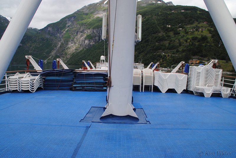 Däcket högst upp (som inte har något namn?) används som soldäck. Så fort solen visade sig så var besättning på plats och la ut solstolar här uppe.