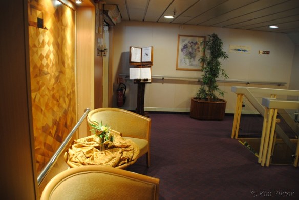 Dag 2 på resan tillbringades ute till havs. Under den tiden passade jag på att ta många inredningsbilder, så därför startar jag nu en rundvandring på fartyget (obs vissa bilder är tagna under andra dagar på kryssningen).