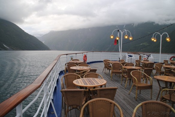 Jag skyndade mig upp på däck för att njuta av insegligen genom Storfjorden.