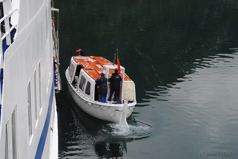 Äntligen fick man komma iland efter nästan 2 dygn till sjöss. Den andra Hellesyltfärjan Bolsøy, hann lägga till medans vi åkte tenderbåten.