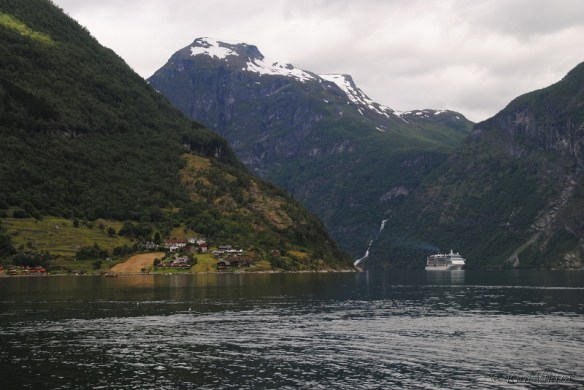 Efter en timmes kryssning i Geirangerfjorden kom vi äntligen till byn Geiranger. Inget kryssningsfartyg låg inne, men fler skulle komma.