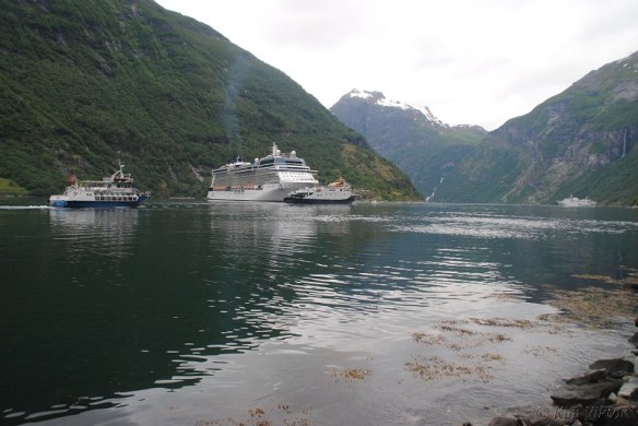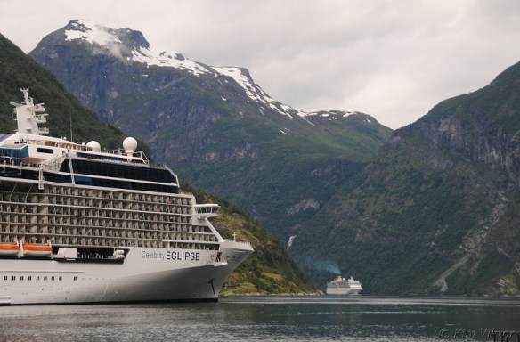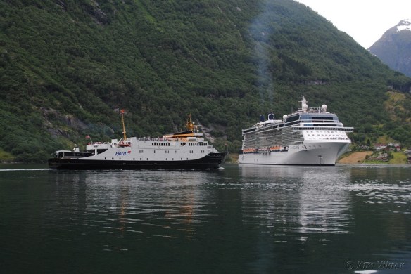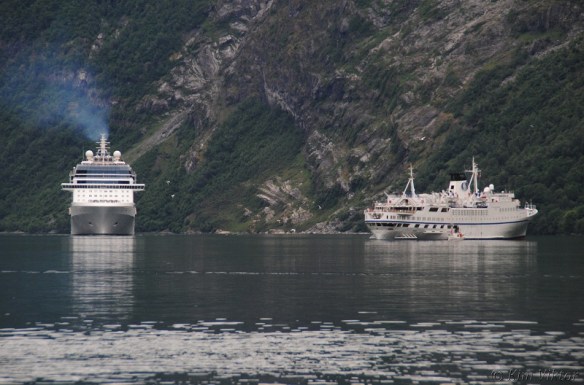 När man ser dessa fartyg komma i Stockholms skärgård känns de verkligen som jättar. Men här i de norska fjordarna känns de mycket mindre.
