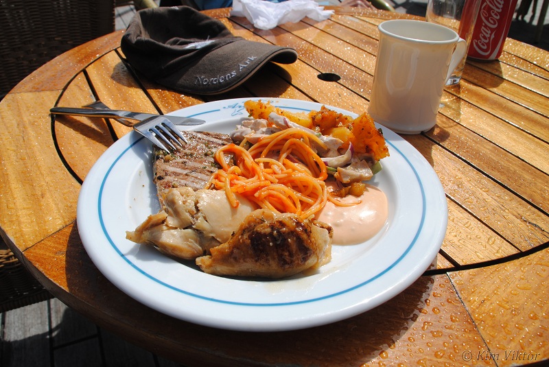 Det smakade gott med lunch efter några timmar iland. Bl.a. serverades det grillad tonfisk denna dag.
