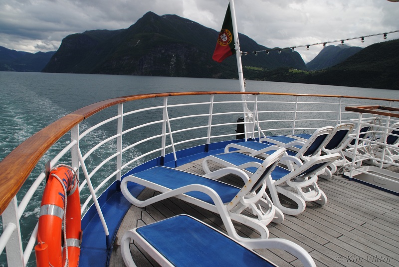 Istället fortsatte vi ut i Storfjorden. Vi var en hel del som valde att njuta av utseglingen på Panoramadäcket.