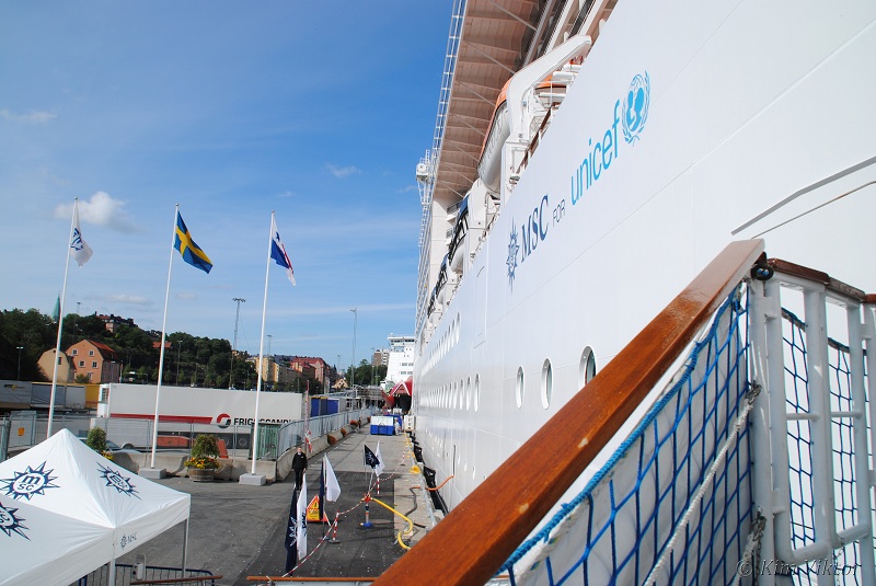 Landgången upp till däck 5 på MSC Magnifica. Det var lite svårt att mötas på denna trånga landgång.