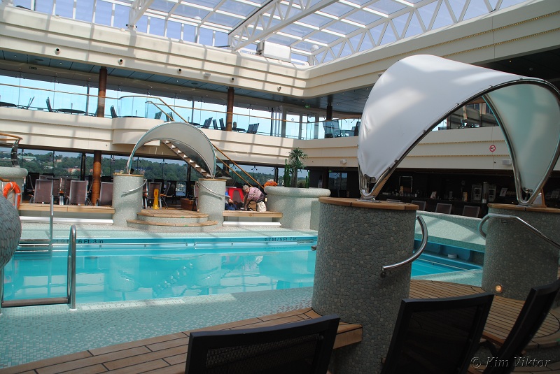 Inomhuspoolen med ett glastak som kan fällas upp.