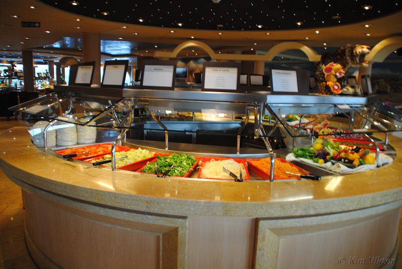 Här serveras buffe till frukost, lunch och middag.