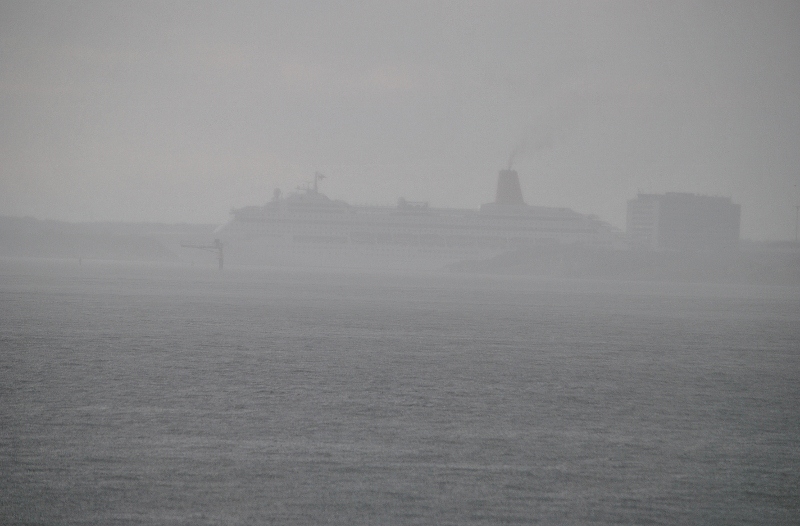 När Oriana ska avgå kommer en störtskur.