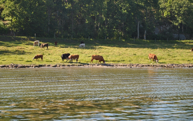Kossor betar längs kanalkanten.