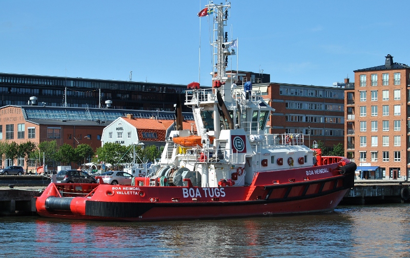 Boa Heimdal ligger vid kajen. Tydligen så har Boa tugs nu lagt ner sin verksamhet i Göteborg.