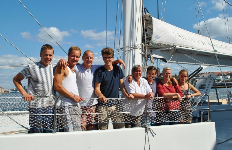 Då var båten städad, vi tar farväl av besättningen, här står dom uppradade i fören, men det är två som saknas, Kapten och Andreas (En i besättningen som klev av några dagar tidigare.