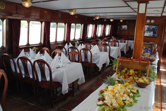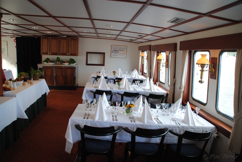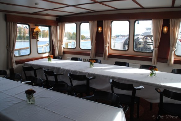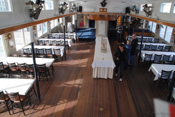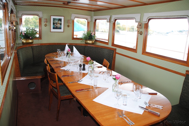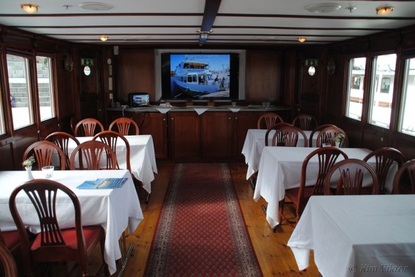 Vilken härlig utsikt man har från matsalen, som sträcker sig över 2 däck.