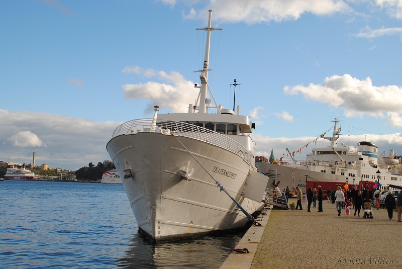 Först ut Teaterskeppet som bygddes i Portugal 1959 som en fisketrålare. Hon blev ett passagerarfartyg på 1980-talet.